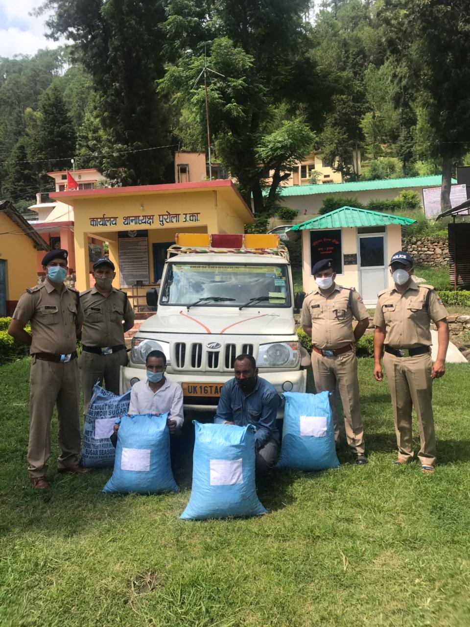 पुरोला थाना पुलिस ने दो व्यक्तियों को अबैध सतवा जड़ी बूटी के साथ गिरफ्तार किया है। मणिकांत मिश्रा, पुलिस अधीक्षक उत्तरकाशी द्वारा जनपद में किसी भी प्रकार के अवैध कार्य करने वालों के प्रति सख्त मुहिम छेड़ी हुई है जिसमें उनकी बेहतर पुलिसिंग के कारण वह लगातार सफल भी हो रहे है,साथ ही जनपद में अवैध तरीके के कारोबार करने वालों के प्रति अभियान चलाकर कार्रवाई करने हेतु सभी पुलिस उपाधीक्षकों एवं थाना प्रभारियों को समय-समय पर उचित दिशा-निर्देश दिये जाते है।