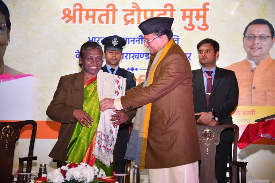 राष्ट्रपति श्रीमती द्रोपदी मुर्मु का पहली बार उत्तराखण्ड आगमन पर मुख्यमंत्री आवास में नागरिक अभिनन्दन किया गया। मुख्यमंत्री आवास में आयोजित गरिमापूर्ण कार्यक्रम में राष्ट्रपति ने 2001.94 करोड़ रूपये की 09 विकास योजनाओं का लोकार्पण और शिलान्यास किया। राष्ट्रपति ने 528.35 करोड़ रूपये की 03 योजनाओं का लोकार्पण और 1473.59 करोड़ की 06 योजनाओं का शिलान्यास किया। इस अवसर पर राज्यपाल लेफ्टिनेंट जनरल गुरमीत सिंह (से.नि.), मुख्यमंत्री पुष्कर सिंह धामी एवं अन्य गणमान्य उपस्थित रहे।