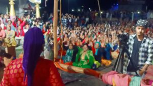खरशाली गाँव मे आयोजित सास्कृतिक संध्या में स्थानीय लोगो के साथ विदेशी महिलाएं भी मंच पर जमकर झूमे।