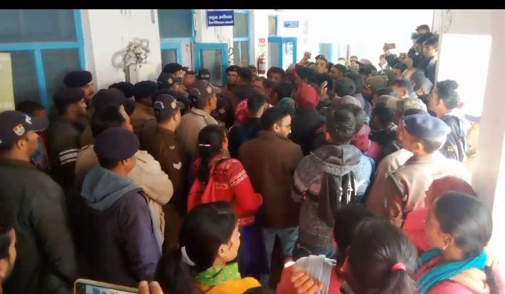 रिजोर्ट में युवती की मौत पर अस्पताल में परिजनों का हंगामा।