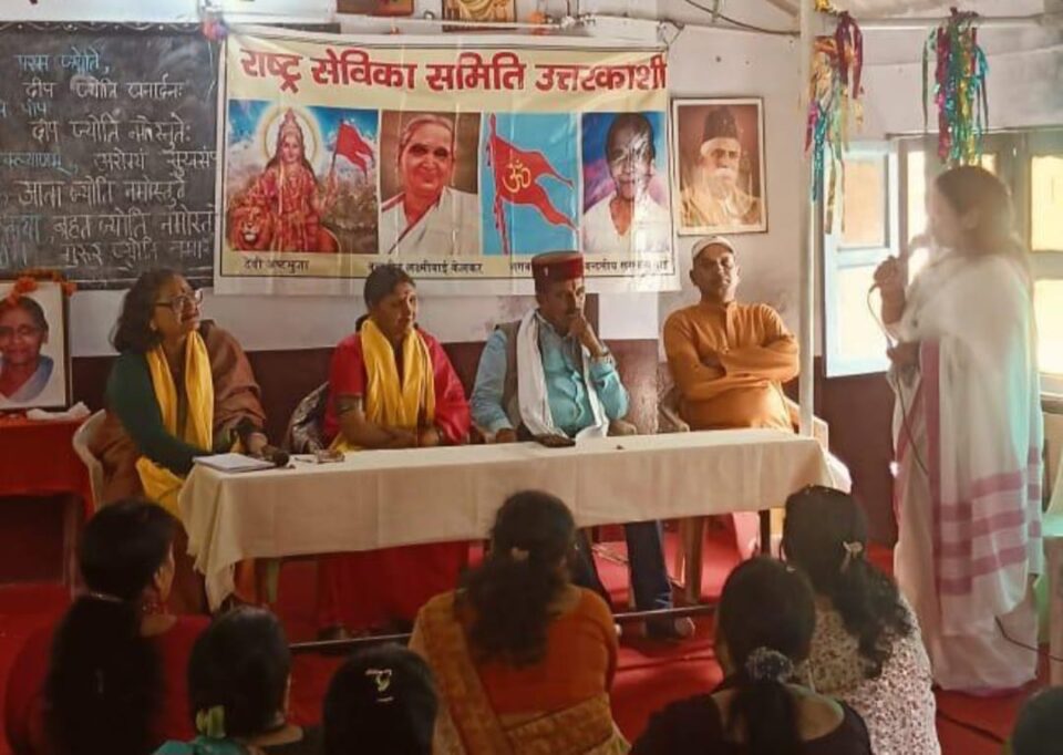 उत्तरकाशी/अरविन्द थपलियाल।राष्ट्र सेविका समिति उत्तरकाशी के द्वारा लोकमाता अहिल्याबाई के राष्ट्र निर्माण में योगदान पर एक संगोष्ठी का आयोजन गंगोरी में किया गया। जिसमें मुख्य अतिथि के रूप में ब्लॉक प्रमुख श्रीमती विनीता रावत, जगमोहन रावत,मुख्य वक्ता के रूप में डा. अंजना रावत,विशिष्ठ वक्ता के रूप में दौलत राम ने प्रतिभाग किया। कार्यक्रम में प्रो.राखी पंचोला ने लोक माता अहिल्याबाई के राजनीतिक जीवन को बताया। डा. अंजना ने लोकमाता के सामाजिक व सांस्कृतिक कार्यों पर प्रकाश डाला।दौलत राम ने भारतीय संस्कृति के रूप में जीवन जीने की प्रेरणा दी। मुख्य अतिथि प्रमुख भटवाड़ी ने मातृ शक्ति को अपनी शक्ति व संस्कृति के अनुसार समाज में काम करने की प्रेरणा दी। चन्द्रवीर राणा ने कार्यक्रम में सहयोग प्रदान किया।कार्यक्रम का संचालन श्रीमती सीमा सजवान द्वारा किया गया। कार्यक्रम में श्रीमती किरन पाँवार,श्रीमती सरिता नौटियाल, श्रीमती सावित्री मखलोगा, श्रीमती ममता भट्ट, श्रीमती गीता गैरोला श्रीमती सुनैना राणा , सहित समस्त मातृ शक्ति उपस्थित रही।