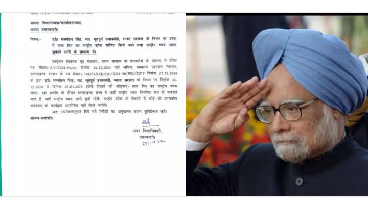 पूर्व प्रधानमंत्री डॉक्टर मनमोहन के निधन पर सात दिन का राजकीय शोक रहेगा।