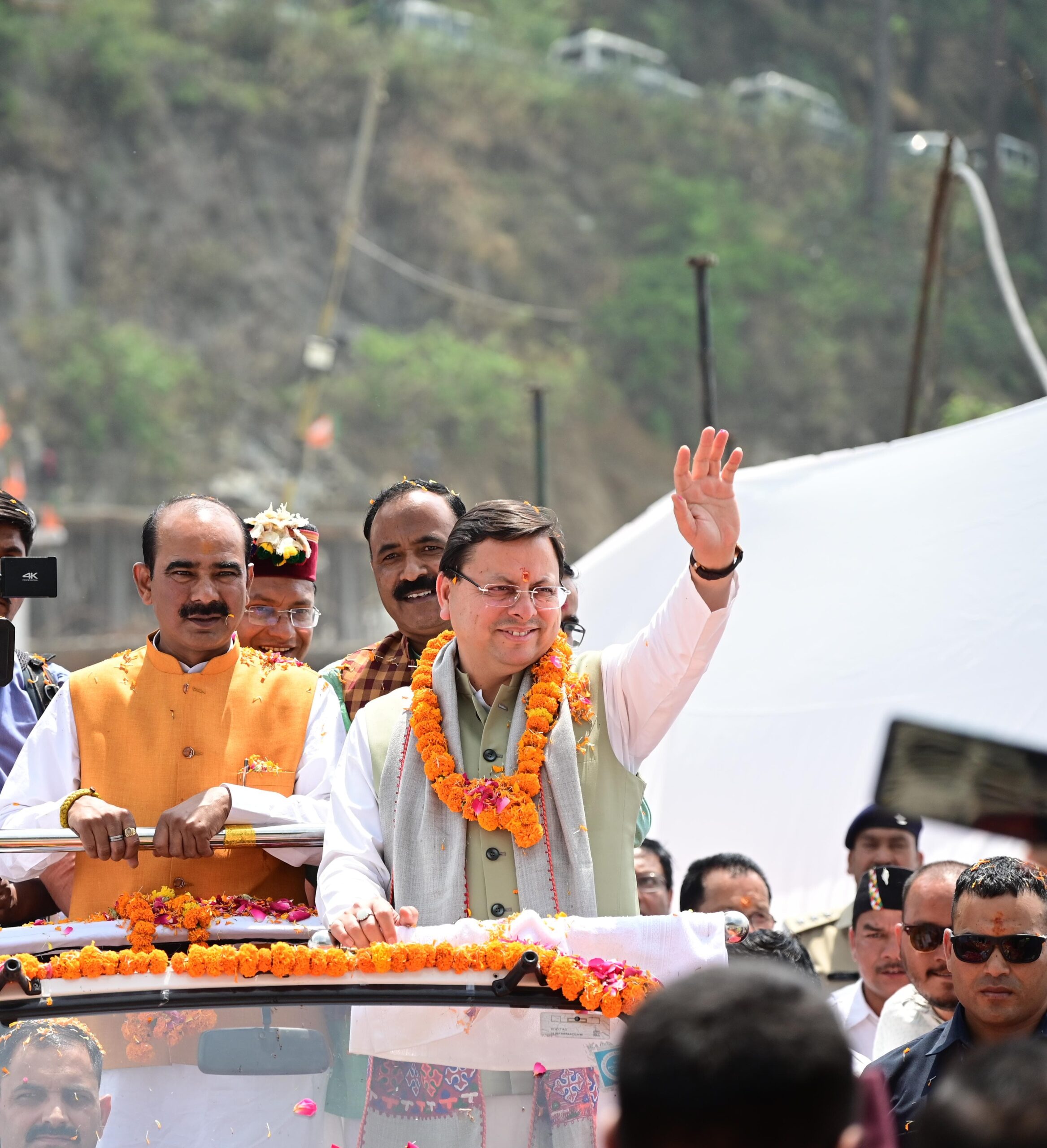 बाबा बौखनाग मंदिर में प्राण प्रतिष्ठा के लिए घर से भेंट और पूजा सामग्री लेकर सिलक्यारा पहुंचे मुख्यमंत्री।