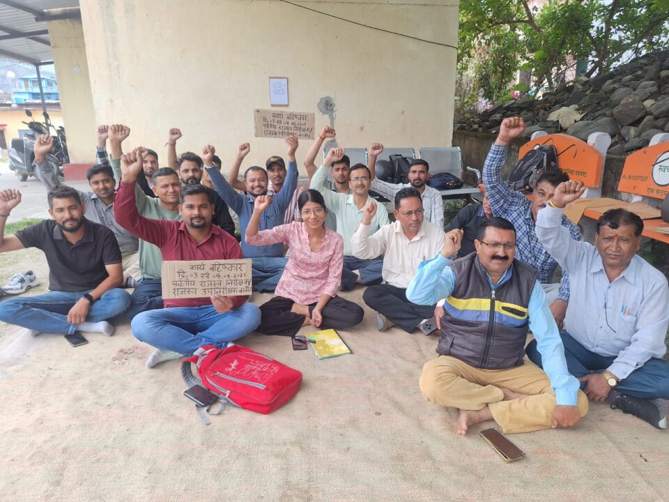 बड़कोट। तहसील बड़कोट के अंतर्गत पर्वतीय राजस्व निरीक्षक,राजस्व उपनिरीक्षक एवं सेवक संघ शाखा बड़कोट ने तहसील परिसर में राजस्व पुलिस कार्यों और अंश निर्धारण के काम की मांग के निस्तारण के लिए दो दिवसीय कार्य बहिष्कार करते हुए धरना दिया । संघ का कहना है कि शासन को कई बार चेतावनी दी गई है, लेकिन अब तक कोई अंश निर्धारण के काम का कोई आश्वासन नही मिला तो आज और कल कार्य बहिष्कार रहेगा । राजस्व पुलिस कार्यों के बहिष्कार का ऐलान के साथ तीन और चार जून को प्रदेश स्तरीय कार्य बहिष्कार के आह्वान पर बड़कोट शाखा ने तहसील परिसर में धरना दिया । संघ शाखा अध्यक्ष वेद प्रकाश नौटियाल ने कहा कि शासन को कई बार चेतावनी और हाईकोर्ट के आदेशों का भी हवाला दिया जा चुका है। इसके बाद भी पटवारियों से राजस्व पुलिस का काम वापस नहीं लिया जा रहा है और अंश निर्धारण व सभी तकनीकी कार्यो के लिए चल रही मांगो का निस्तारण न होने से आक्रोश व्याप्त है। संघ से जुड़े सभी कर्मियों ने दोनों मांगो के निस्तारण की सरकार से मांग की है। इस मौके संघ अध्यक्ष वेदप्रकाश नौटियाल, उपाध्यक्ष नरेश रावत,