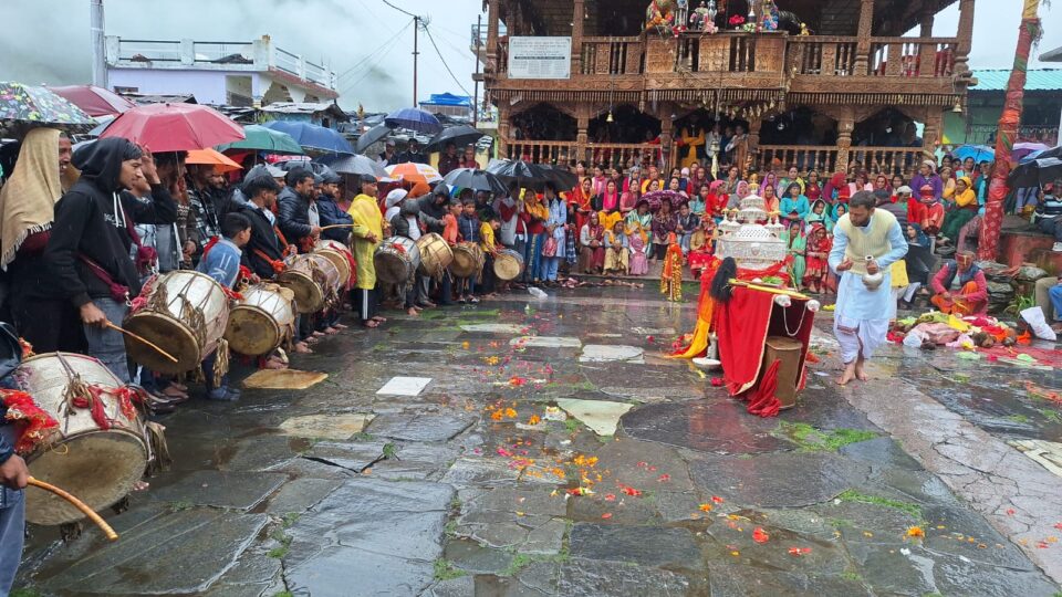 बड़कोट। खरशाली समेश्वर देवता के मंदिर परिसर में ग्रामीणों ने देवता की पूजा-अर्चना कर सुख, शांति और समृद्धि की कामना की। मेले में स्थानीय समृद्ध संस्कृति की झलक दिखी। जनपद के खरसाली गांव में समेश्वर देवता का मेला धूमधाम से मनाया गया। ग्रामीणों ने देव डोली के साथ रासौं-तांदी नृत्य किया। साथ ही फोतड़ी नृत्य व कफुआ मुख्य आकर्षण का केंद्र रहा। यहां मेले में 12 गांव के अलावा दूर दराज के लोगों ने प्रतिभाग किया। यमुना के मायके खरसाली गांव में हर साल सावन में क्षेत्र के आराध्य समेश्वर देवता के मेले का भव्य आयोजन किया जाता है। बृहस्पतिवार सुबह समेश्वर देवता के मंदिर परिसर में ग्रामीणों ने देवता की पूजा-अर्चना कर सुख, शांति और समृद्धि की कामना की। मेले में स्थानीय समृद्ध संस्कृति की झलक दिखी। ग्रामीणों ने ढोल-दमाऊं की थाप पर रासौ-तांदी नृत्य किया।मेले में गीठ पट्टी के बनास, पिंडकी, मदेष, बीफ, निषणी, दुर्बिल, कोठार, दांगुड गाँव सहित 12 गांव के ग्रामीणों ने प्रतिभाग किया। इस मौके पर सैकड़ो श्रद्धालु मौजूद थे।