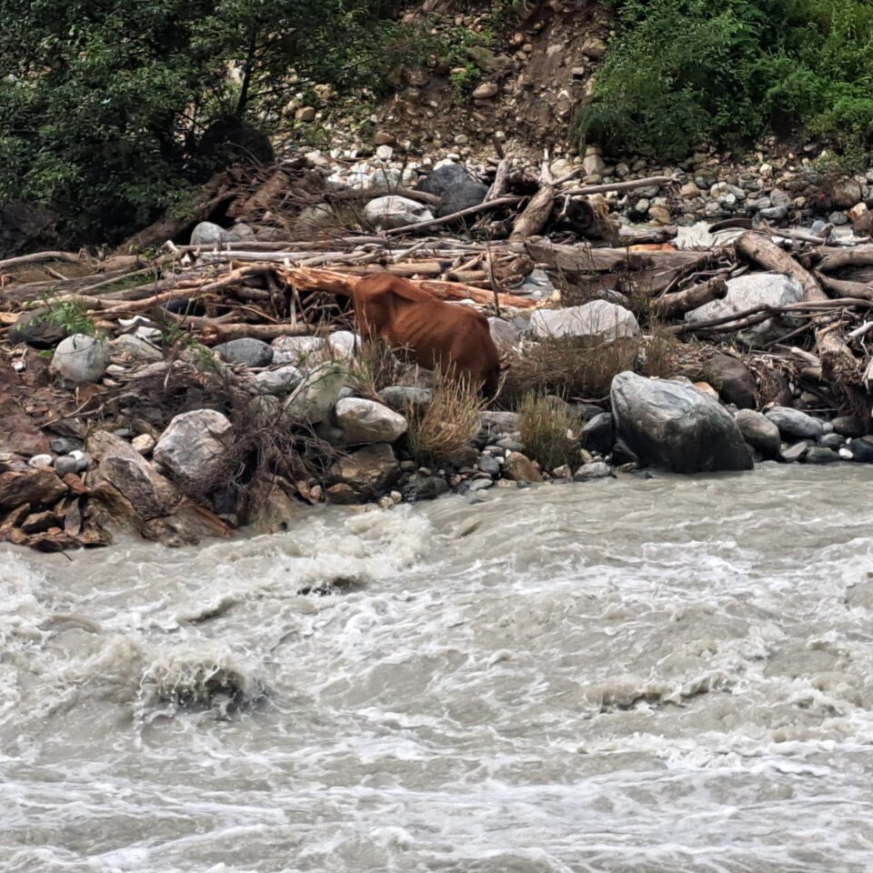 बड़कोट।खरादी के पास यमुना नदी की दो धाराओं के बीच स्थित एक टापू पर गौ माता पिछले 20 दिनों से फंसी हुई है, जहाँ तक पहुँच पाना बेहद कठिन है। एसडीआरएफ (राज्य आपदा प्रतिवादन बल) की टीम ने दो दिन तक रेस्क्यू का प्रयास किया, परंतु अब तक गाय को सुरक्षित बाहर नहीं निकाला जा सका।