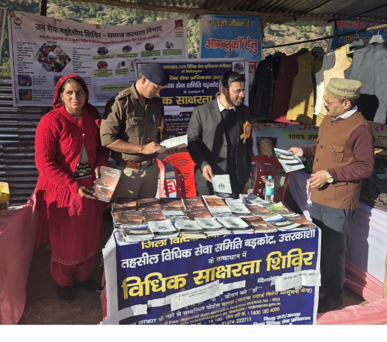 रवांई शरदोत्सव सांस्कृतिक एवं पर्यटन विकास मेले के तहत जिला जज/अध्यक्ष, जिला विधिक सेवा प्राधिकरण, उत्तरकाशी गुरूबख्श सिंह के मार्गदर्शन में सिविल जज/अध्यक्ष, तहसील विधिक सेवा समिति बडकोट के द्वारा विधिक साक्षरता शिविर आयोजित किया गया। शिविर में आमजन को निःशुल्क कानूनी सहायता, विभिन्न अधिनियमों, अधिकारों और न्यायिक सेवाओं के बारे में महत्वपूर्ण जानकारी प्रदान की गई।