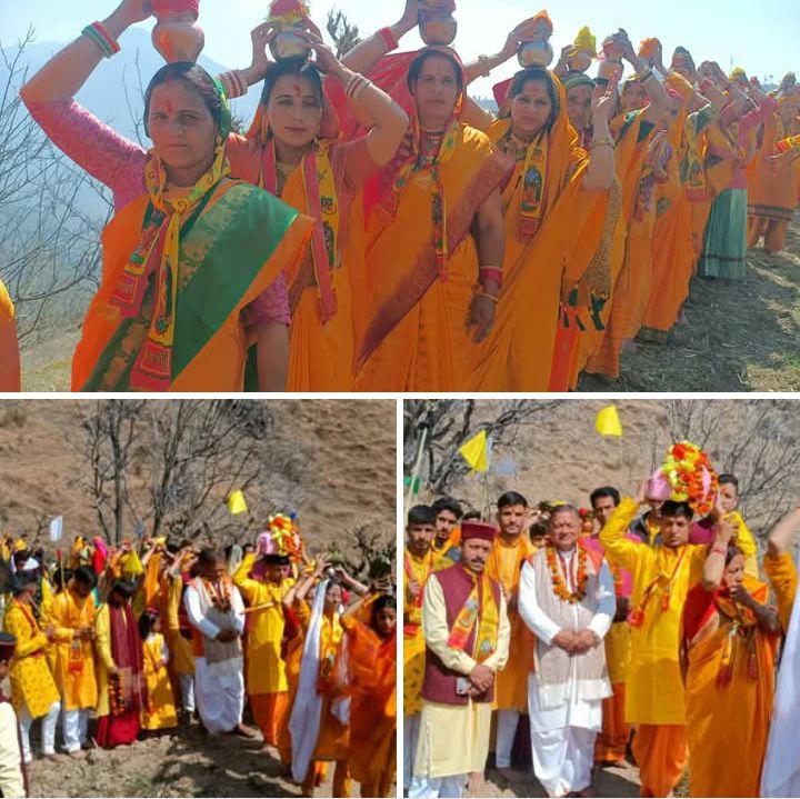 श्रीमद्भागवत कथा के अवसर पर कलश यात्रा रूद्रेश्वर महादेव और कथा वक्ता शिवप्रसाद नौटियाल के सानिध्य में वैदिक मंत्रोच्चार से संपन्न हुई।