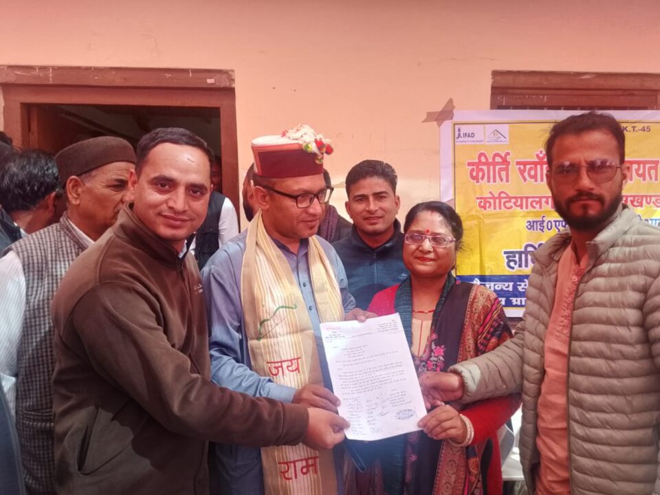 ग्रामीणों ने विधायक से अनुरोध किया है कि संबंधित विभाग को निर्देशित कर जल्द से जल्द इस कार्य को पूरा कराया जाए। ज्ञापन पर ग्राम प्रधान सूर्यपाल सिंह, क्षेत्र पंचायत सदस्य खांसीराजेश राणा , श्रीमती कमला राणा वरिष्ठ कार्यकर्ता भाजपा जिला उत्तरकाशी सहित कई ग्रामीणों के हस्ताक्षर भी दर्ज हैं।